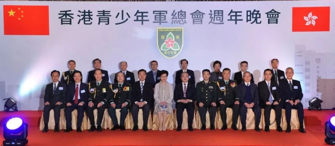 Ms. Carrie Lam, Chief Executive of Hong Kong S.A.R, Mr. Zhimin Wang, Director of Liaison Office of the Central People’s Government in the Hong Kong S.A.R., Mr. Feng Xie, Commissioner of the Ministry of Foreign Affairs of the People's Republic of China in the Hong Kong S.A.R., Mr. Yongjiang Tian, Major General of People's Liberation Army Hong Kong Garrison, were the officiating guests invited to attend the Annual General Meeting. Mr. Calvin Choi (back row, second from the right) was appointed as the Honorable President of Hong Kong Army Cadets Association and Mr. Yat-Kin Sin (back row, second from the left) became a Member of Hong Kong Army Cadets Association General Assembly.
