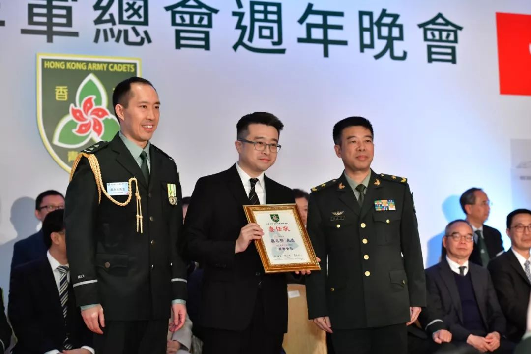The annual dinner reception for Hong Kong Army Cadets Association took place on January 4th, 2019. Ms. Carrie Lam, Chief Executive of Hong Kong S.A.R, Mr. Zhimin Wang, Director of Liaison Office of the Central People’s Government in the Hong Kong S.A.R., Mr. Feng Xie, Commissioner of the Ministry of Foreign Affairs of the People's Republic of China in the Hong Kong S.A.R., Mr. Yongjiang Tian, Major General of People's Liberation Army Hong Kong Garrison, were invited the officiating guests invited to attend this annual dinner reception, and together with Mr. Daryl Ng, Director of Hong Kong Army Cadets Association, Chairman of Greater Bay Area Homeland Youth Community Foundation and Deputy Chairman of Sino Group, on behalf of Hong Kong Army Cadets Association, presented the Certificate of Appointment to Mr. Man Tuen Lo, Chairman of Wing Li Group (International) Ltd.,Mr. Chun-wan Fok, Chief Executive Officer of the Hong Kong Huo Yingdong Group, Ms. Connie Wong, Managing Directorship of Wong Sun Hing Limited., and Mr. Calvin Choi, Chairman and President of AMTD Group, Founder of AMTD Foundation, officially appointing them as “Honorable President” of the Hong Kong Army Cadets Association. Ms. Carrie Lam, Chief Executive of Hong Kong S.A.R., particularly thanked in her speech the Honorable Presidents and members of the Hong Kong Army Cadets Association who were former heads of the different Disciplinary Forces . She also encouraged the community to continue to care about the development of the Hong Kong Army Cadets Association and to support the education and training of young generations in Hong Kong. The Chairman of the Hong Kong Army Cadets Association, Mr. Tak Fung Tai, and Mr. Bunny Chan, Chairman of the Board of the Hong Kong Army Cadets Association, also delivered speeches respectively, thanking Hong Kong people for their long-term support for the Hong Kong Army Cadets Association. Mr. Yat-kin Sin, AMTD Chief of Staff, Vice President of AMTD Foundation, and the former Commissioner of Correctional Services of the Hong Kong S.A.R. Government, became a Member of Hong Kong Army Cadets Association General Assembly. At this annual dinner reception, the Hong Kong Army Cadets Association also presented the Outstanding Team Member Award, the Best New Team Member Award, and the Outstanding Service Award.