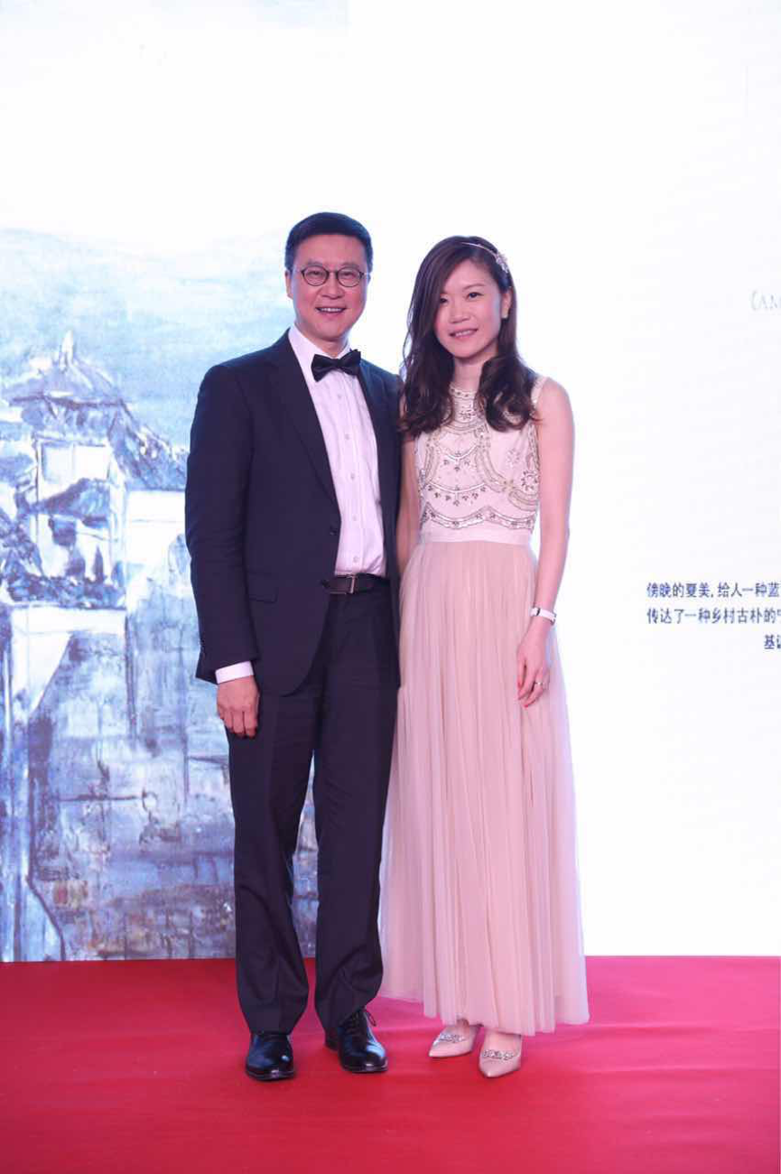 (尚乘集团首席运营官、资本市场与咨询业务副主席郭宁洁女士与画作《蔚蓝下梅》竞拍得主安永审计部华中区主管合伙人陈杰先生合影留念)