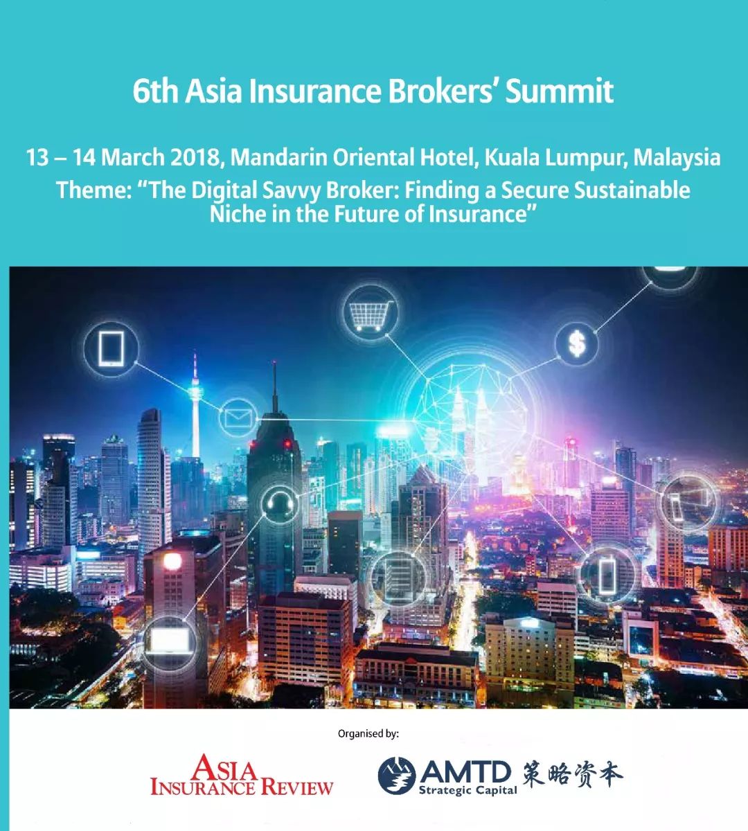 3月12日,香港本土最大的保险经纪公司、尚乘集团旗下专注于保险经纪和风险解决方案业务的尚乘策略资本集团(AMTD Strategic Capital Group)与亚洲区内最具影响力的保险行业杂志《亚洲保险评论》(Asia Insurance Review)联合主办的 “第六届亚洲保险经纪峰会” (6th Asia Insurance Brokers' Summit),将于3月13日至14日(周二至周三)于马来西亚吉隆坡盛大举行。