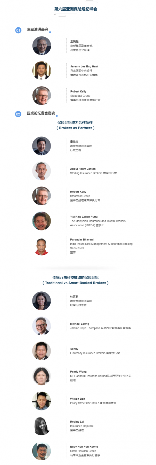 在本届亚洲保险经纪峰会里,尚乘集团副董事长王锐强将担任主题演讲嘉宾,而尚乘策略资本集团行政总裁辜信杰以及联席行政总裁林彦君亦会担任发言嘉宾,分别带领 “保险经纪作为合作伙伴 (Brokers as Partners)”及“传统vs由科技推动的保险经纪(Traditional vs Smart Backed Brokers)”的圆桌会议嘉宾进行深入讨论交流。