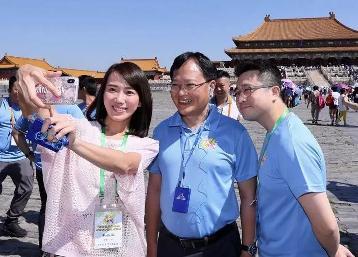 蔡志坚(右)与朱嘉盈(左)共同作为香港新一代青年企业家代表,在中联办副主任陈冬(中)的带领下,参加香港各界青年代表参访团,参访北京故宫,并在人民大会堂接受中共中央政治局、国务院副总理、中央港澳工作协调小组组长韩正的亲切接见