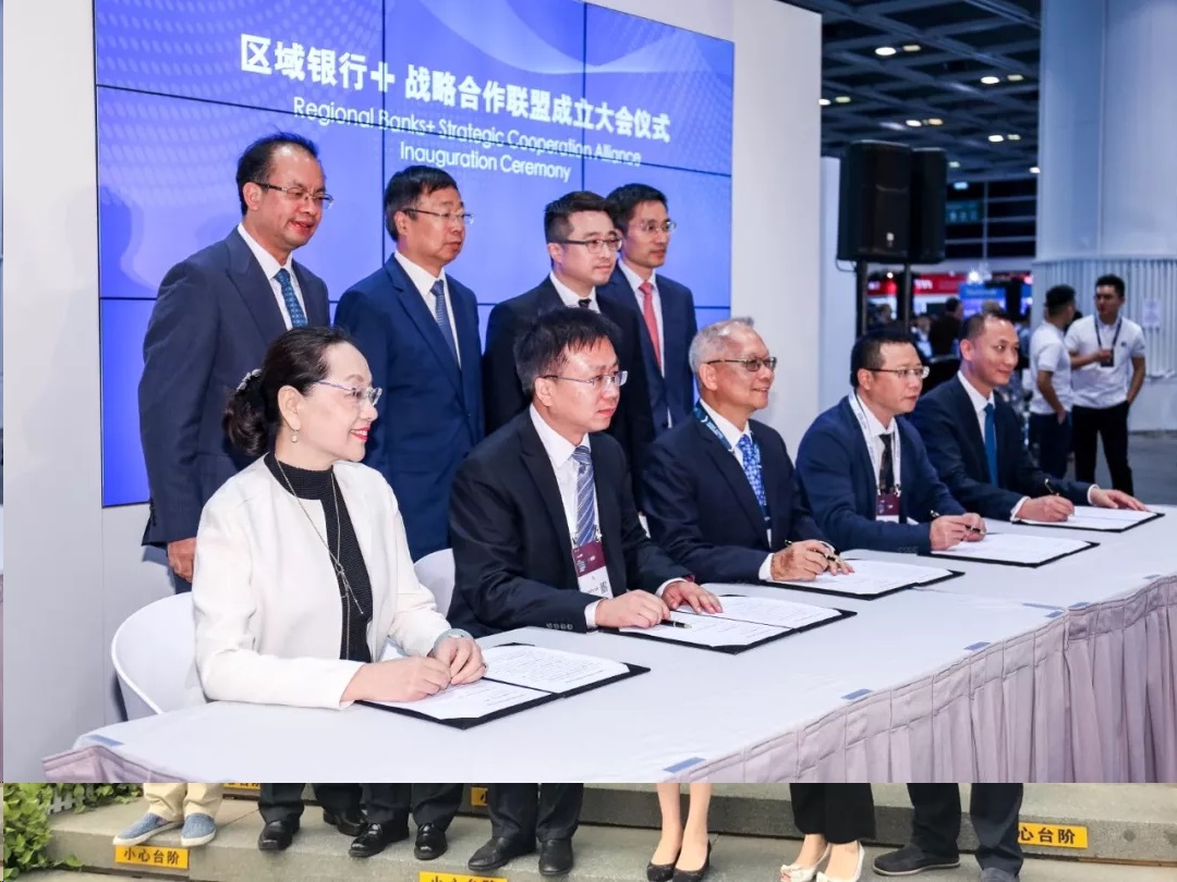 青岛银行董事会执行董事、董事会秘书吕岚(前排左一)代表青岛银行签署“区域银行+”战略合作联盟协议