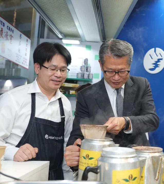 陈茂波司长饶有兴致地尝试制作奶茶