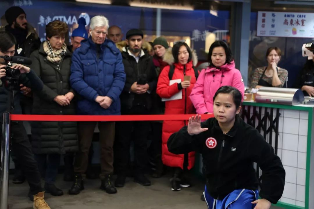香港中华基金学校的青年学生表演少林功夫