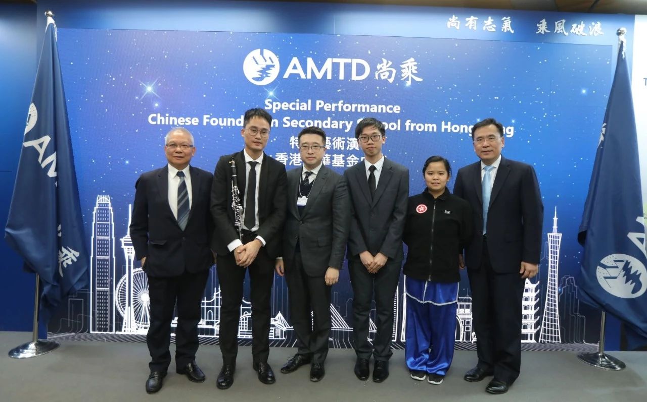 尚乘集团董事长兼总裁蔡志坚、副董事长王锐强、首席幕僚长单日坚与香港中华基金学校的表演学生代表